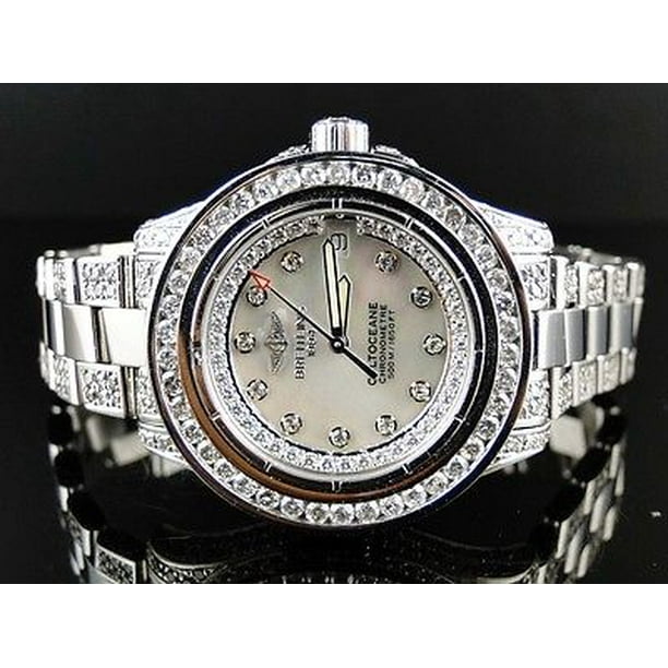 Breitling Colt Ocean Full Diamond Watch 27860 Ladies On Sale White Stainless Steel Round Cut 13 50 Ct